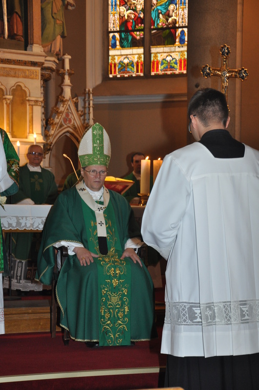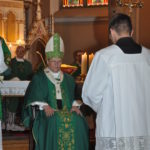 Потоа следуваше Евхаристиското славење кое го предводеше монс. д-р Киро Стојанов во сослужение на дон Давор Топиќ. Во својата хомилија бискупот Стојанов истакна: „Денес се чувствувам почестен и радосен што можам да бидам со вас заедно на оваа средба на стари и болни од нашата парохија, а по повод Година на Семејство, преку која ја откриваме силата на Светите Тајни. Сакам да започнам со зборовите на свети Иван Павле II, кој во 1999 година обраќајки им се на стаире лице рече: ’Кога со мислите се враќаме во минатото, обидувајќи се да направиме некој биланс, тогаш тоа е сосеме примерно. Човекот е потонат во времето: во него се раѓа, живее и умира. Раѓањето означува прв датум од животот, а смртта втор, последен, а тие два дена се алфа и омега, односно почеток и крај.’ Според овие зборови на Иван Павле II животот е дар Божји, а возраста сама по себе е вредна заради животот кој се продолжува. Животот е носител на лични „дарови“, благодарејќи на наследното искуство, знаењето, поуката што ја чуваат старите. Драги браќа и сестри и во годините на својата старост доколку сакаме можеме да бидеме корисни и да подготвиме радост на младите, а за себе утеха и Божја награда, бидејќи Бог ќе ги награди нашите добри дела направени на еден од овие најмалите. Таа радост нека биде наједноставна и исполнета со милост, а тоа е кога некој духовно и молитвено ќе го подржиме во нашите скромни молитви упатени до Бог и Пресвета Дева Марија.“